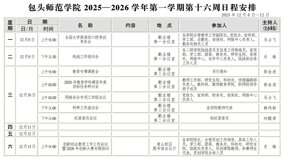 上一条:包头师范学院2025—2026学年第一学期第十七周日程安排 下一条:包头师范学院2025—2026学年第一学期第十五周日程安排